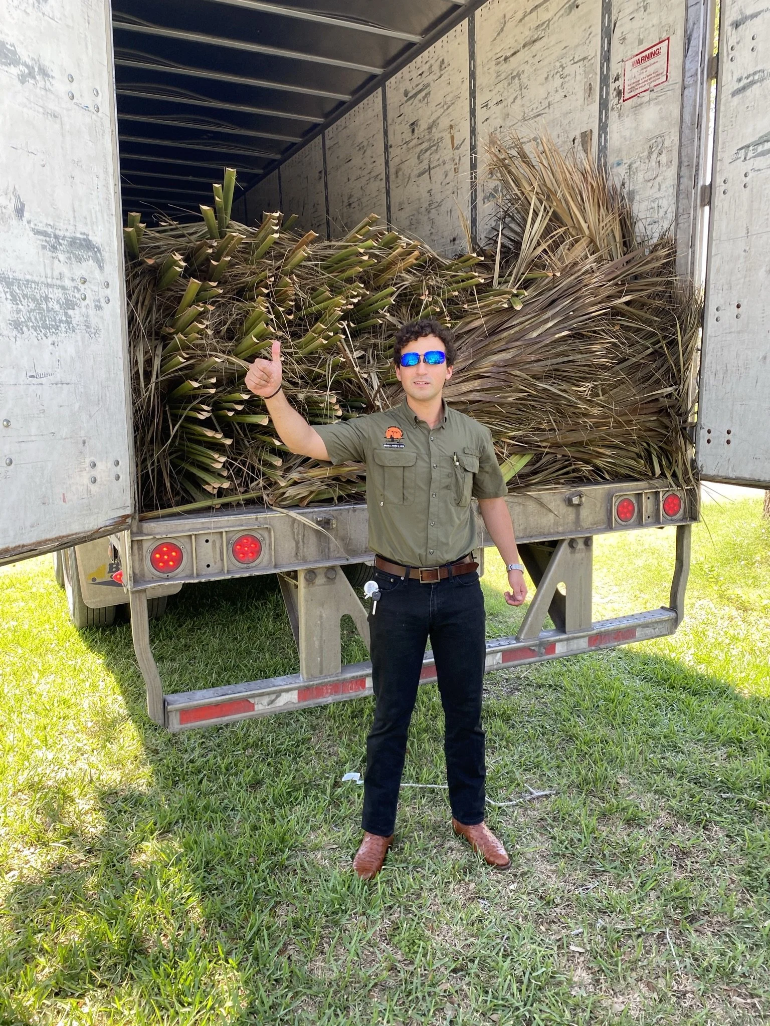 Palm leaves from Mexico for sale and delivered anywhere in the USA. Trailers typically carry 15,000 leaves and price is dependent on delivery destination. Smaller loads can also be delivered at client’s specific needs. Palm leaves are still green upon arrival to construction or unloading site. Shipping and delivery is always included in cost. Contact us for a quote and estimated arrival date today!